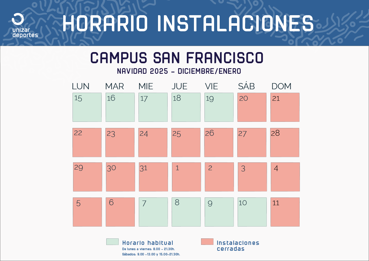 Instalaciones CERRADAS del 20 de diciembre al 6 de enero (ambos incluidos)