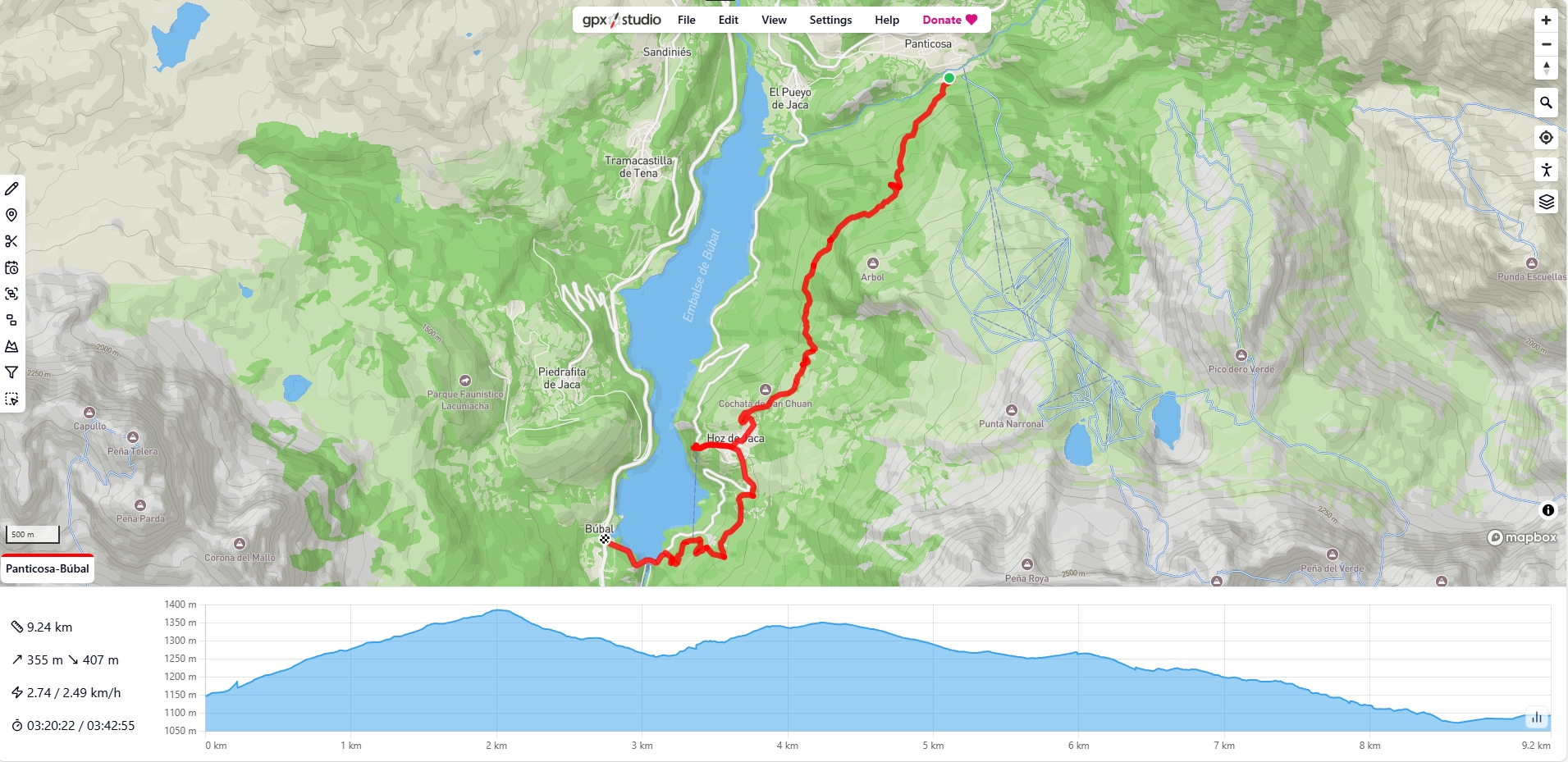 Altitud minima de la ruta.  1.090 m  (Presa de Búbal)