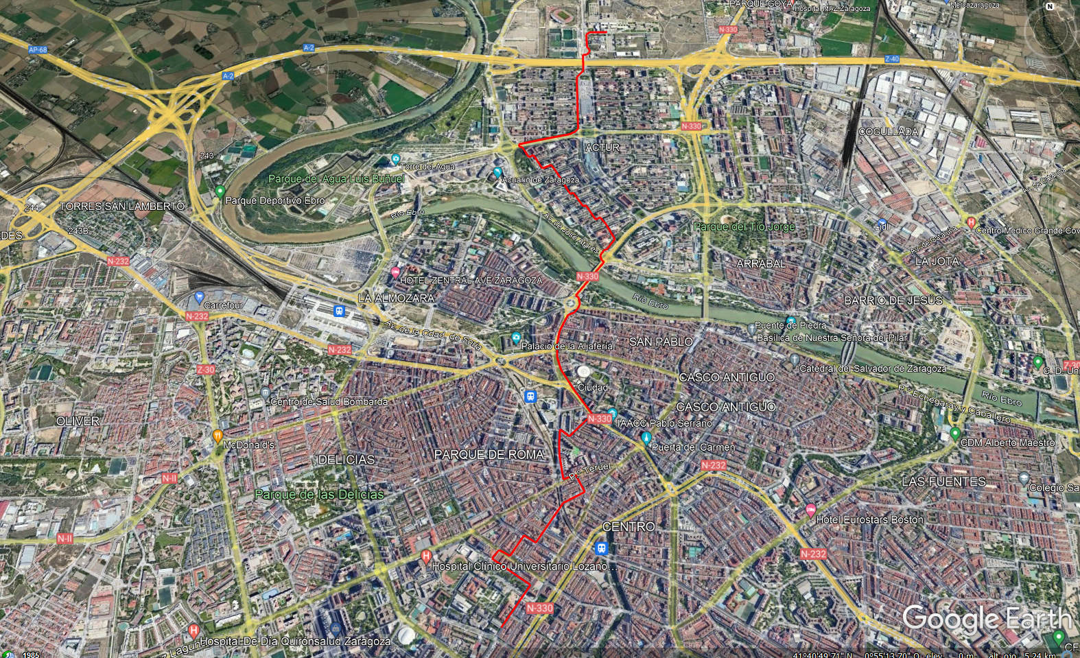 Recorrido: Desde el punto violeta del Mercado Agroalimentario (Campus San Francisco) hasta el edificio Ada Bryron Campus Río Ebro